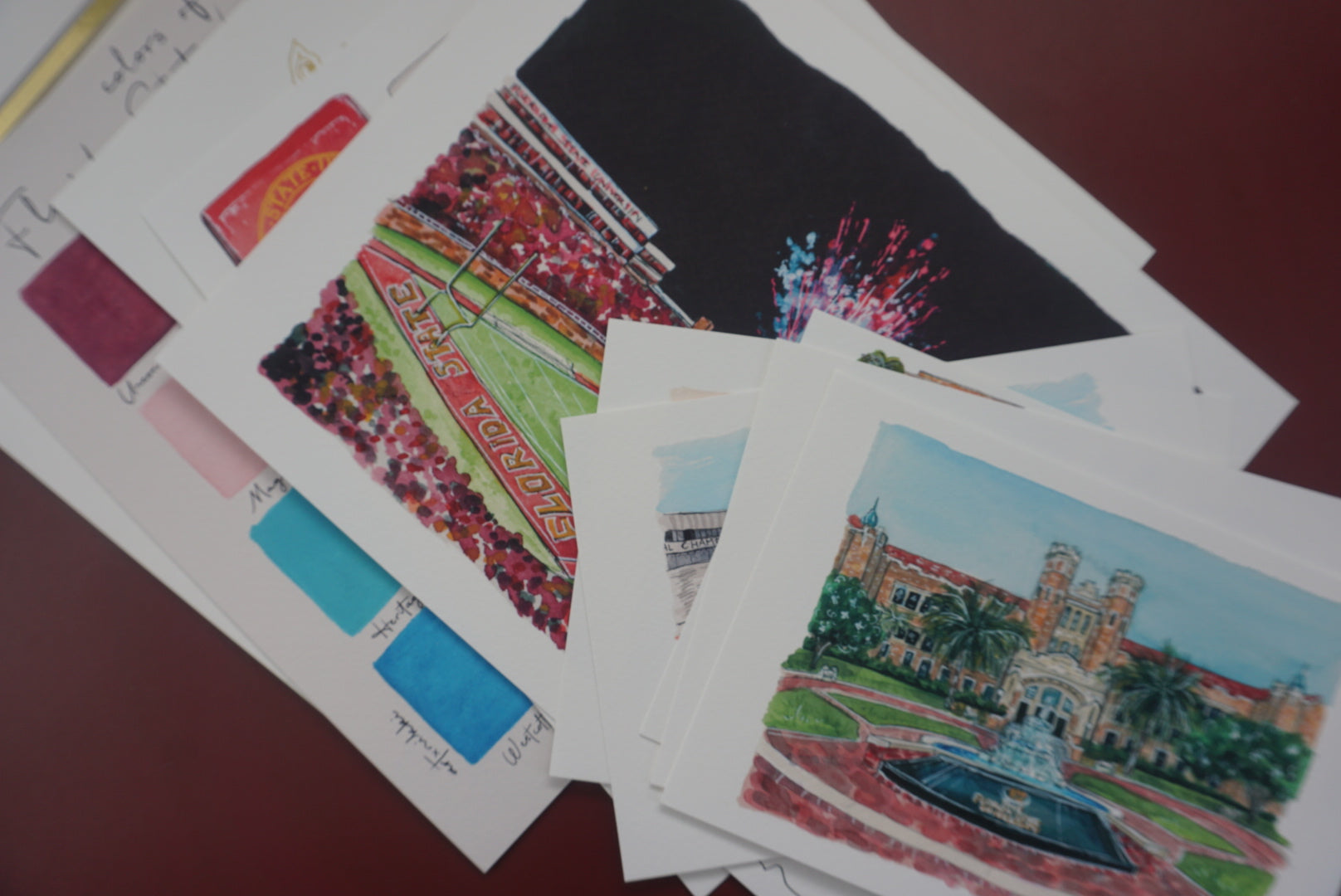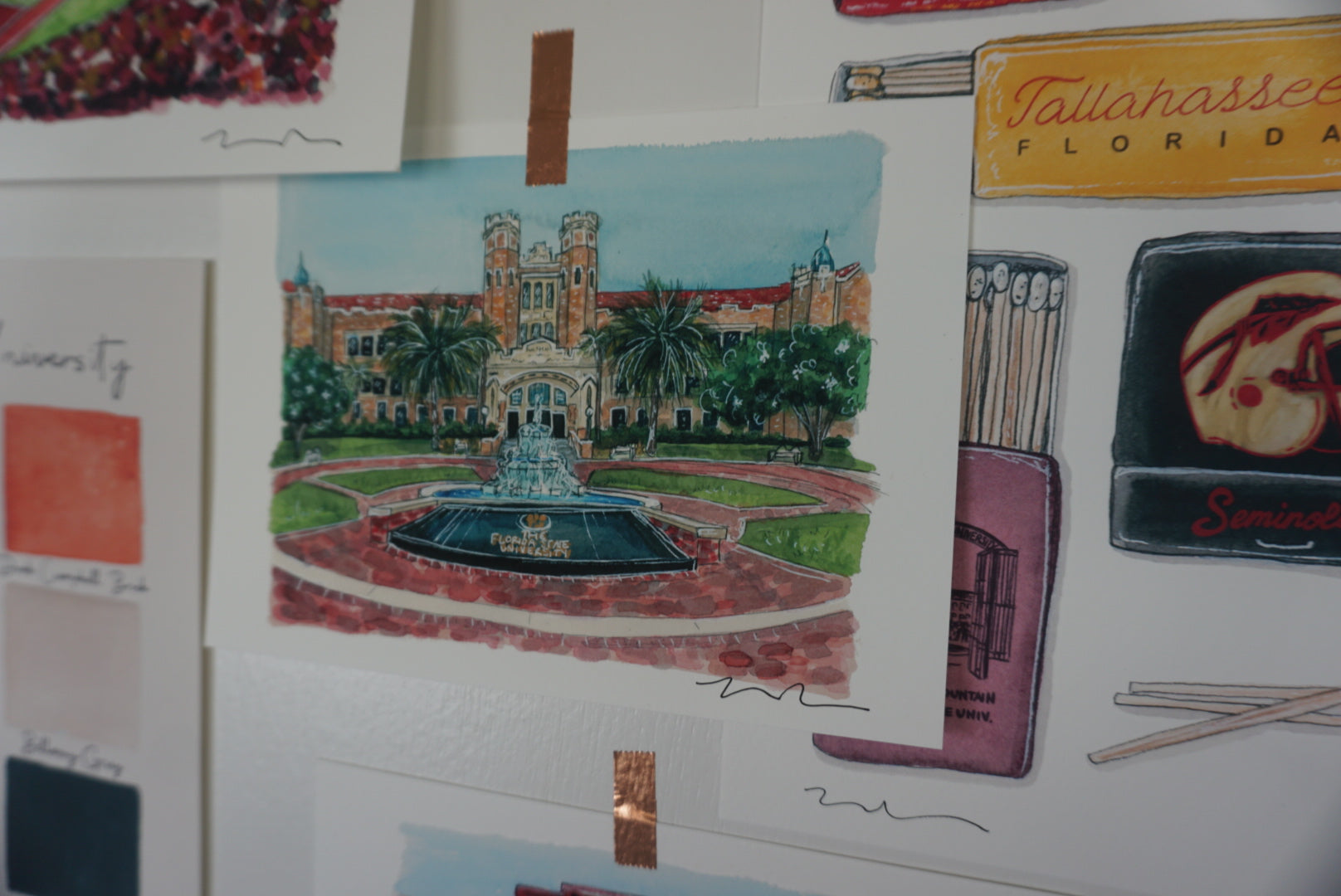 We offer a wide range of art prints and products with our own designs, wholesale to many boutiques across the US, and do custom work for small businesses and brands. We also of course have Florida State University licensing and sell celebratory Seminole gear and artwork!