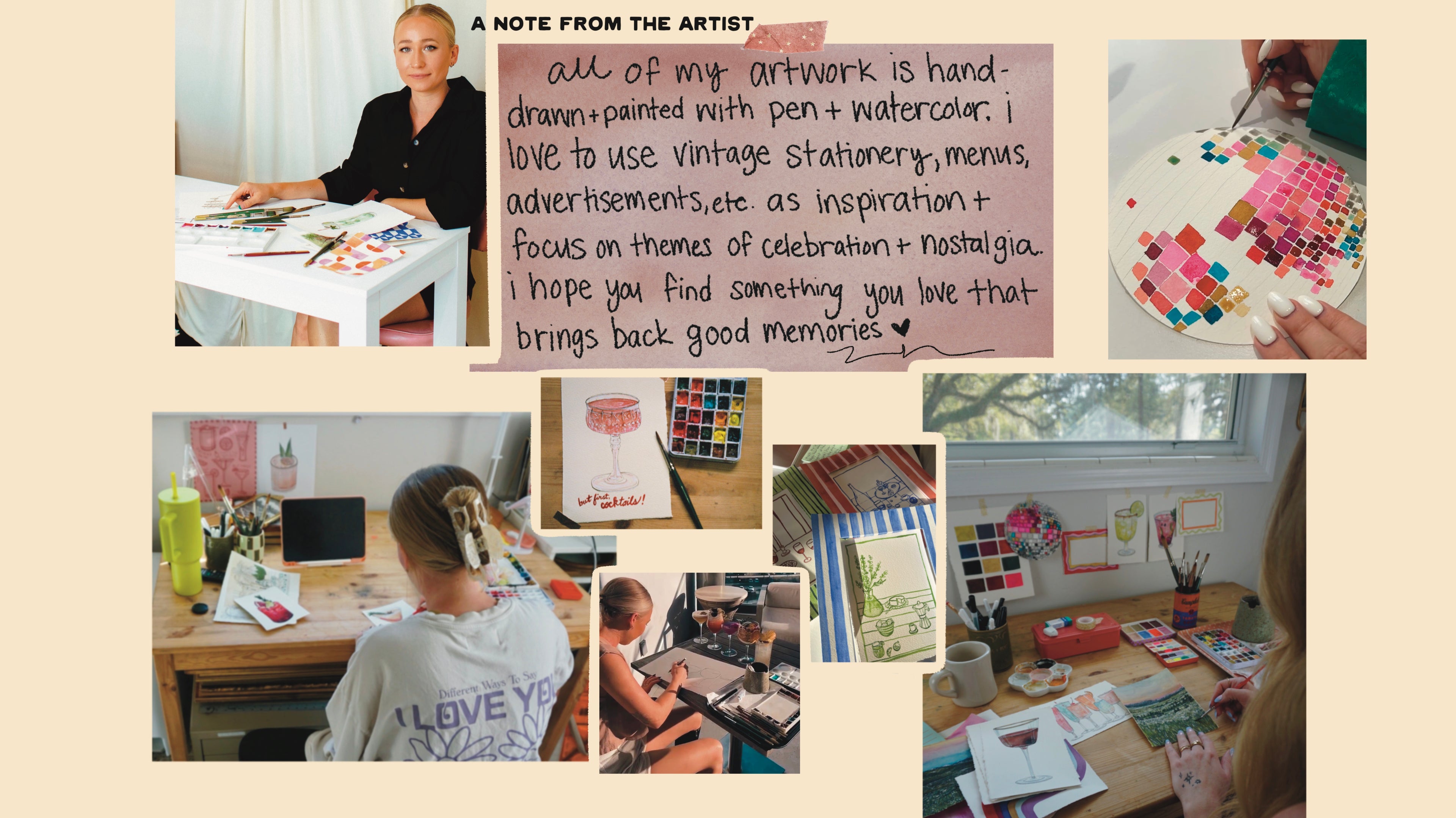 I'm Nikki- the watercolor artist behind all of these products! I graduated from Florida State University in 2019 with my BA in Studio Art and launched artxnikki in 2020 on Instagram. I opened our Tallahassee brick and mortar in 2022, and now get to run the business full-time alongside my husband, Brock!